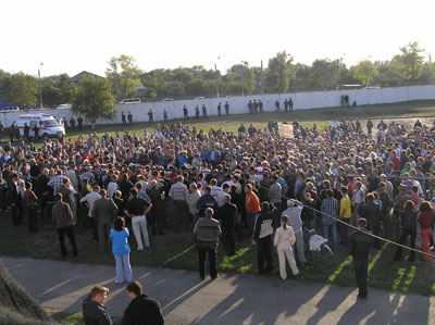 На городской стадион, где должен был проходить сход, собралось около 2000 человек. Причем довольно значительная часть пришедших на народное вече представители молодого поколения, более всего страдающего и от выходцев из Дагестана, и от районной власти, которая не в состоянии ни навести порядок в городе, ни обеспечить безработную молодежь рабочими местами.