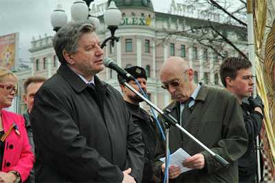 Председатель «Союза офицеров» С. Н. Терехов затронул в своём выступлении события, проходящие сейчас в Украине. Украинская Рада приняла проект закона Ющенко, разрешающий проведение учений НАТО на территории Украины. «Мы должны выступать против такой политики украинской власти. сказал С. Н. Терехов. Бдительность наших патриотов должна не ослабевать. Не без нашего давления и российская власть начинает называть НАТО не партнёрами, а вероятными противниками. Надо идти единым фронтом, единым Народным Союзом к победе».