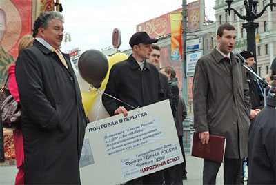 Председатель Московской регионального отделения М. Б. Челноков исполнил песню «Журавли» и стихотворение С. Есенина. Депутат Государственной Думы ФС РФ В.И. Алкснис отметил, что великая победа в первую очередь была победой русского народа. И сейчас на русском народе лежит особая ответственность за страну. Русские хотят единственного равноправия. Алкснис подчеркнул, что Народный Союз выступает за равноправие всех народов, но при этом отмечает особую роль русского народа.
