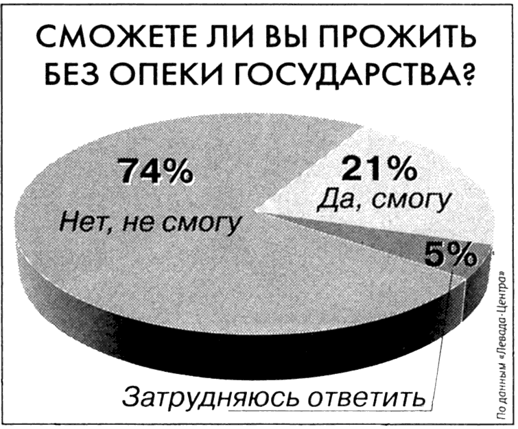 Огромное значение при выборе идеологической модели имеет определение роли государства не только в экономической, или политической, но и личной жизни граждан. Традиционно в России государство всегда играло важную роль, которую никто не пытался ставить под сомнение. Естественно процесс передачи части функций институтам гражданского общества, наконец, самой личности, в этой связи будет встречать определенные трудности. С этим нельзя не считаться, ведь и через 17 лет после смены политической системы граждане традиционно возлагают всю ответственность на государство, власть. Так, по опросам социологов летом 2007 года почти две трети граждан полагали, что они не смогут прожить без опеки государства.