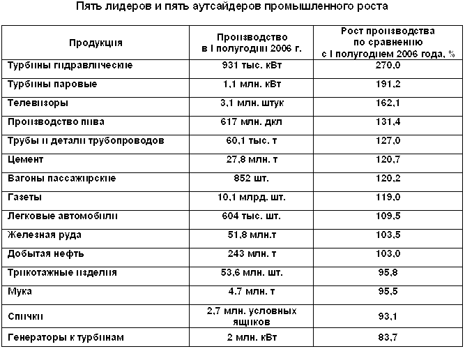 Как видно из приведенных данных лидерами промышленного роста в первой половине 2007 года стали отрасли (включая "отверточные" - телевизоры и автомобили) не относящиеся к современным наукоемким областям. Их развитие характеризует уровень и состояние экономики страны на индустриальном этапе, т.е. 50 лет тому назад.