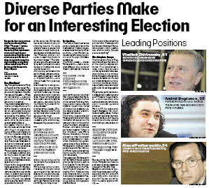 Despite the decision to narrow the election threshold from 5% to 7%, some 11 parties will be competing in the December 2 Duma parl iament elections. Completing our recent series of articles on the elections, we profile three of the more unusual contenders: the Liberal Democratic Party of Russia, the Party of Social Justice and the Democratic Party of Russia.