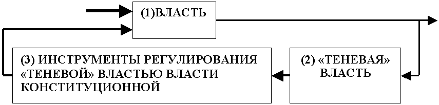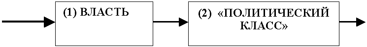 Если сопоставить со схемой принятую в России за основу модель парламентской демократии, то в идеале, видимо, предполагалось, что Власть (1) будет "регулироваться" через издаваемые законы когортой "народных избранников", т.е. в нашем случае - думских депутатов и губернаторов-членов Совета Федерации, составляющих, как теперь говорят, "политический класс". Но это - в теории. В реальности же, как известно, очень скоро Власти это регулирование надоело и вместо раздачи очередных именных "конвертов" депутатам перед голосованием по важнейшим законам (чтобы они "правильно регулировали"), Администрация совершенно логично взяла курс на прямое включение всей "регулирующей системы" в систему власти. Губернаторов стали назначать из Москвы, в Совете Федерации сегодня заседают лично "рекомендованные" Кремлём региональным элитам люди (соответственно, только Кремлю и обязанные своим положением).