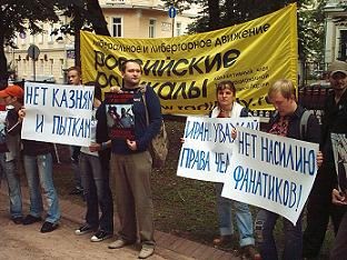 Москва, 19 июля 2005 г. В годовщину публичной казни в Иране подростков-геев Махмуда Асгари и Айаза Мархони, у иранского посольства в Москве состоялась демонстрация, посвященная их памяти, а также протесту против смертной казни и преследований гомосексуалов в Иране. Акция была организована проектом GayRussia.Ru и поддержана движением «Российские Радикалы», а также правозащитной группой «Насилию Нет!» и проектом LaSky. В ней приняли участие около двух десятков человек с плакатами «Иран, уважай права человека!», «Нет – насилию фанатиков», «Нет – казням и пыткам», а также с большими фотографиями казненных подростков.
