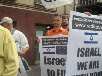ДЕМОНСТРАЦИЯ В ПОДДЕРЖКУ ИЗРАИЛЯ, ОРГАНИЗОВАННАЯ "РОССИЙСКИМИ РАДИКАЛАМИ" И ТРАНСНАЦИОНАЛЬНОЙ РАДИКАЛЬНОЙ ПАРТИЕЙ У ПОСОЛЬСТВА ИЗРАИЛЯ В МОСКВЕ (ФОТО)