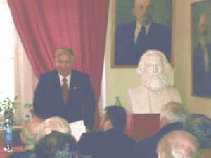 После конференции прошло награждение заслуженных коммунистов ленинградской организации от имени ЦК РКРП-РПК юбилейной медалью "130 лет И. В. Сталину".