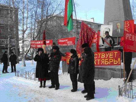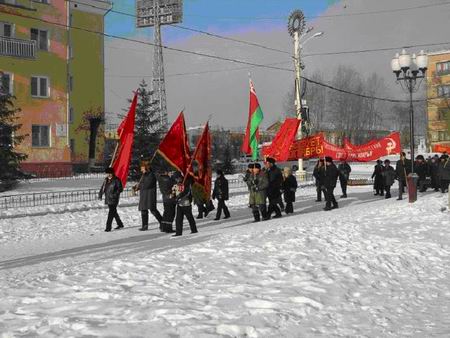 7 ноября в Красноярске прошло два праздничных мероприятия: митинг и шествие КПРФ на левом берегу и аналогичное мероприятие радикальных коммунистов, организованное Революционно – патриотическим союзом Красноярья (РПСК), прошедшее на правом берегу, которое и посетил представитель РКСМ(б). Конечно, хотелось бы посетить оба митинга, но они проходили почти одновременно.