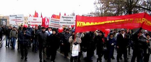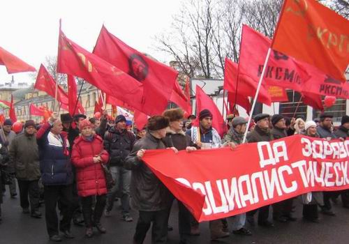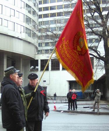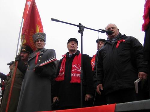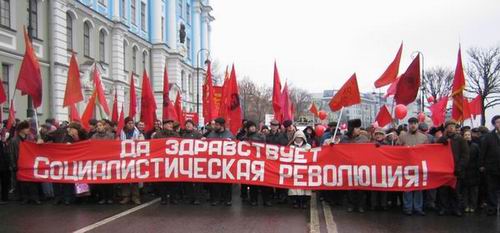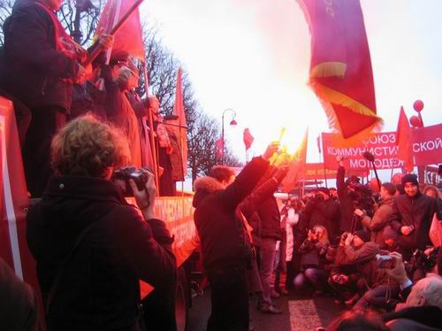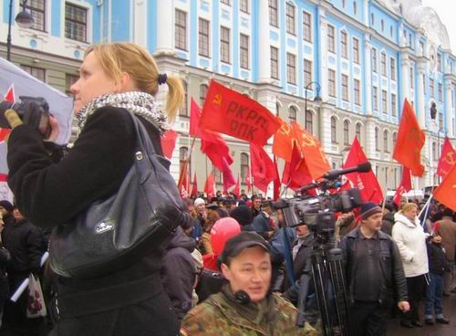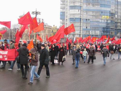 Праздничное шествие в день 92-й годовщины Великой Октябрьской социалистической революции завершилось митингом революционеров и милиционеров у крейсера «Аврора». Товарищи из профсоюзного комитета завода «Форд-Всеволожск» поддержали колонну РКРП мощной звукоусилительной установкой, музыкой и песнями революционного пролетариата. Революция – дело веселое!