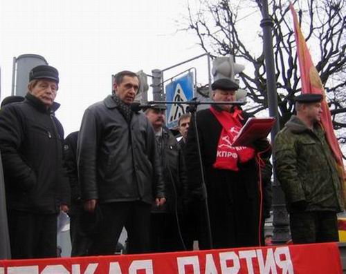 Митингующие представители РКРП, КПРФ, молодежных организаций города единодушно отказались от намерений ответственной оппозиции помогать правительству, спасать русский капитализм и устанавливать лимиты на революции. Перед собравшимися выступили Первый секретарь ЦК РКРП-РПК В.А. Тюлькин, секретарь ЦК Ю.Г.Терентьев, Первый секретарь Ленинградского комитета РКРП-РПК О.Н. Соловьев, Председатель профсоюзного комитета территориальной организации МОРП «Защита», секретарь ЛК РКРП-РПК С.С. Маленцов, секретарь Ленинградской организации РКСМ(б) А.Пряхин.