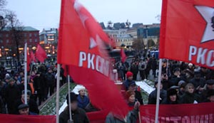 7 ноября в Москве прошло в этот раз не совсем обычно. Левые силы, не согласные с приспособленческой политикой КПРФ, в тот же день провели свой контр-митинг, подготовленный оргкомитетом из представителей РКРП-РПК, РКСМ(б), ВКПБу и их СКМ, ВКПБ (Нины Андреевой), КПСС. Главной задачей мероприятия было показать, что претензии КПРФ на то, чтобы считаться "единственной левой, коммунистической оппозицией" - неправда, что есть в Москве настоящие коммунисты, стоящие на революционных позициях. Конечно, пока народу было меньше, чем на мероприятии зюгановцев - примерно полтысячи, но это только начало.