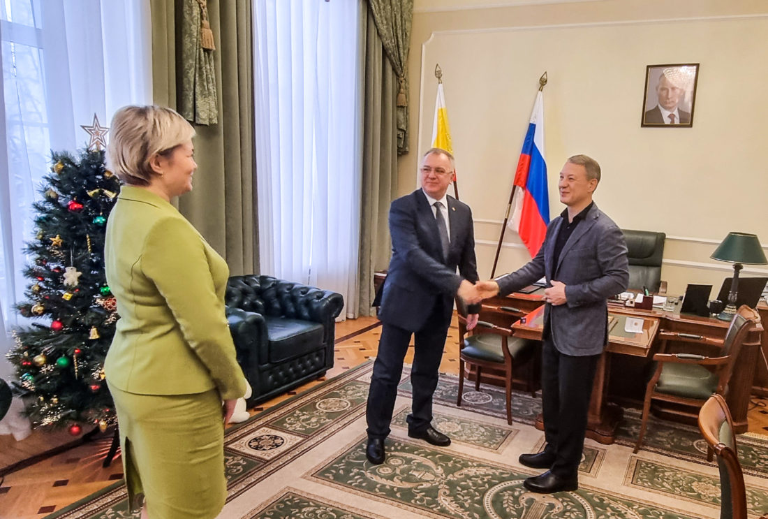 Сегодня, 23 декабря, состоялась встреча заместителя Председателя Центрального совета Партии пенсионеров Андрея Широкова с Председателем Рязанской областной Думы Аркадием Фоминым. В беседе также принимала участие лидер партийной фракции в областном парламенте и руководитель областной партийной организации Наталья Рубина. В ходе встречи Андрей Широков рассказал о том, с какими законодательными инициативами, направленными на защиту интересов старшего поколения, выступала и планирует продолжать работать Партия пенсионеров.