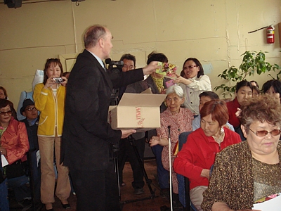 Кобзев В.Ф. раздаёт подарки от имени ООО российские Пенсионеры