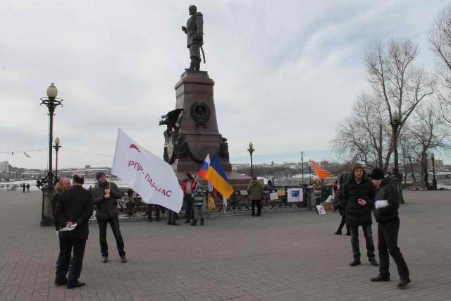 Участники пикета резко осудили операцию российской военщины по аншлюсу полуострова и подчеркнули недопустимость политики национал-социализма в современном мире.