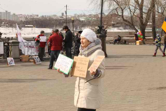Накануне "референдума под прицелом" на территории Автономной республики Крым и в день "Марша мира" в Иркутске состоялся пикет против решения Совета Федерации об использовании вооруженных сил РФ на территории Украины. , к участию были приглашены все желающие, неравнодушные к происходящим в Украине событиям.