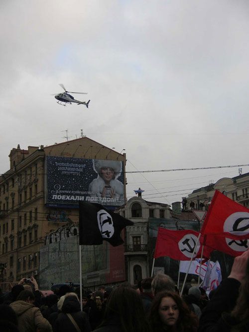 Лидер РПР также отметил, что власть сегодня боится народа и старается отгородить себя от народа. «Посмотрите сколько милиции вокруг, - призвал Рыжков, - Власть боится нас с вами, она боится, что граждане выйдут на улицу с целью отстаивания своих прав, именно поэтому она окружила нас с вами плотным кольцом миллионеров и ОМОНа».