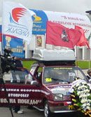 После возложения цветов к мемориалу и благословения священника был дан старт автопробегу. Старт давал генерал армии Шуралев. Автомобили, украшенные символикой Российской партии ЖИЗНИ и фонда «Возрождение», отправились в путь.