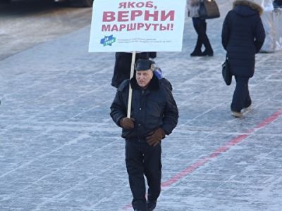 В Екатеринбурге напротив здания мэрии города прошел пикет против новой системы движения общественного транспорта, которую власти обещают ввести летом 2017 года, сообщил 17 января корреспондент .