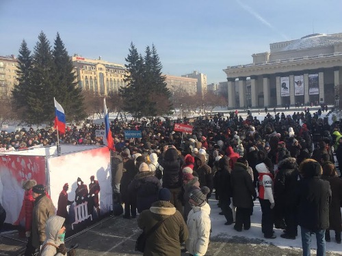 В Новосибирске 28 января состоялся повторный митинг против резких повышений тарифов ЖКХ. На этот раз организаторам удалось добиться от властей предоставления требуемой площадки — и протестная акция прошла в сквере у городского оперного театра, в непосредственной близости от мэрии и центральной городской площади Ленина. По оценке корреспондента , мероприятие собрало до полутысячи недовольных действиями властей горожан.