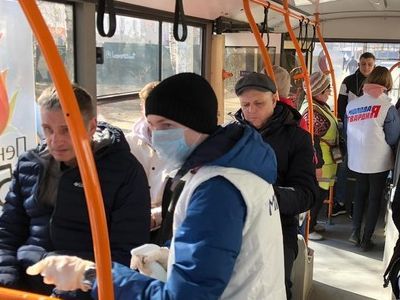 Вместо того, чтобы проводить санобработку салонов автобусов и маршруток на конечных остановках в отсутствии пассажиров, молодогвардейцы начали распылять дезинфицирующие средства и протирать поручни прямо на ходу, не считаясь с людьми.