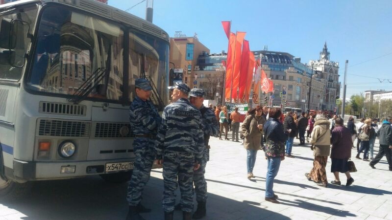 К месту проведения акции подтянуты бойцы ОМОНа.