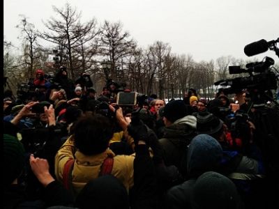 На страстном бульваре еще до начала акции собралось несколько десятков полицейских - они перекрыли выход из сквера. Также полицейские стоят возле входов и выходов из метро. Митингующих "охраняют" несколько женщин полицейских.