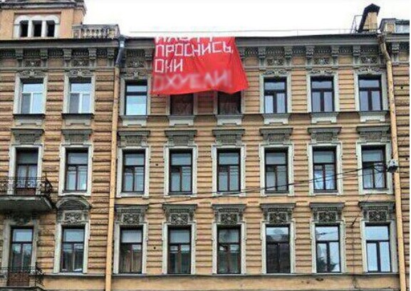 на крыше дома на углу улицы Жуковского и Лиговского проспекта был вывешен баннер "Ильич, проснись, они о***ли".