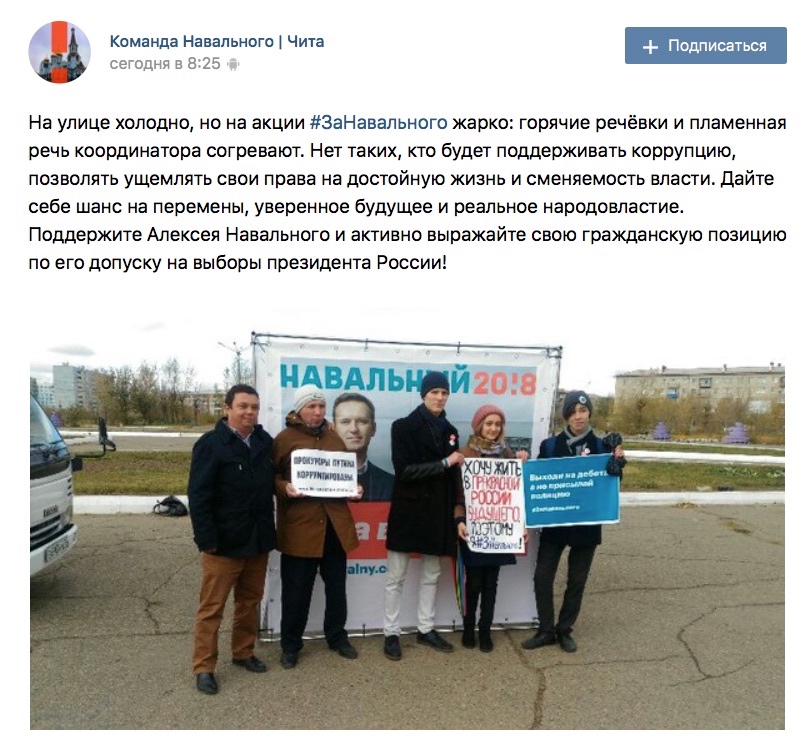 В российский городах начались акции сторонников оппозиционера Алексея Навального. Первыми акции проходят на Дальнем Востоке. Фотографии с мероприятий участники выкладывают в Интернете.