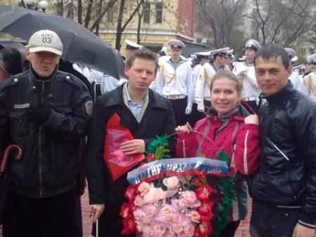 От «Правого дела» в церемонии приняли участие председатель регионального отделения Сергей Кухаренко, председатель исполнительного комитета Евгений Снегов, член политсовета Сергей Ковалев и активисты партии. Особенно стоит отметить мужество молодых активистов, выстоявших около двух часов без зонтов с флагами «Правого дела».