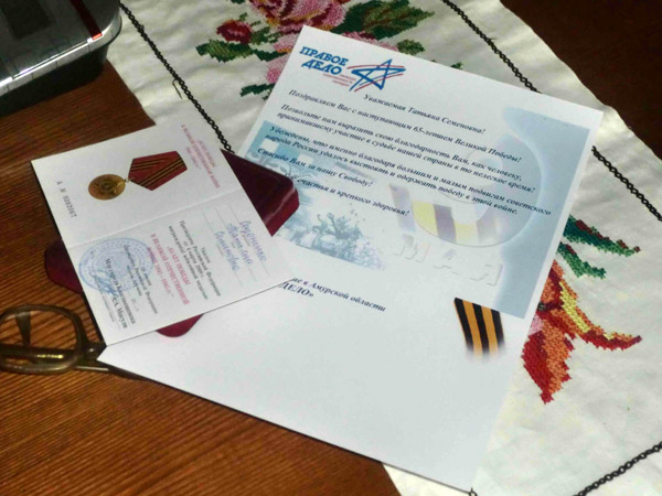 Амурская область: «Правое дело» поздравило ветеранов с наступающим Днем Победы