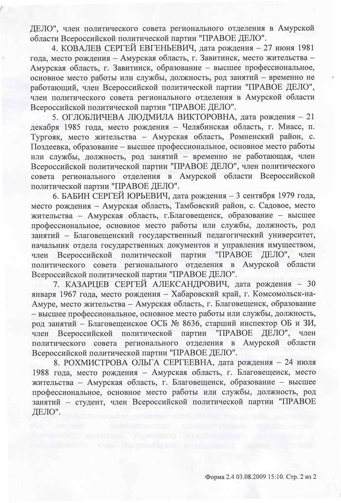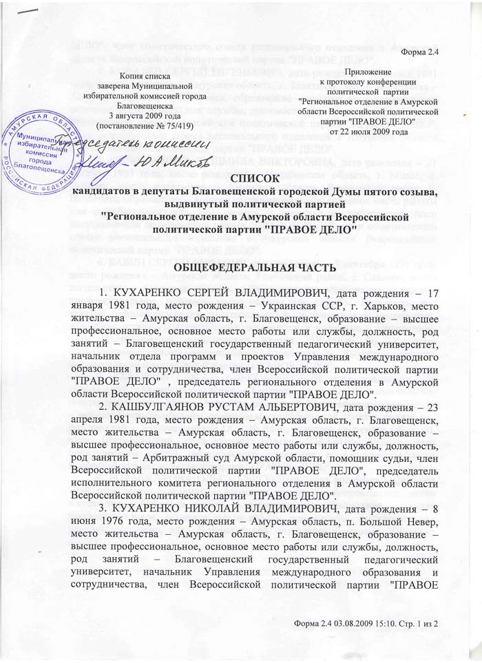 Амурская область: Список «ПРАВОГО ДЕЛА» зарегистрирован на выборах депутатов Благовещенской городской Думы