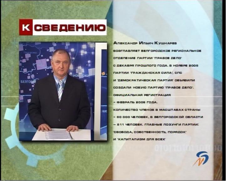 Председатель регионального отделения партии «ПРАВОЕ ДЕЛО» в Белгородской области Александр Кушнарёв принял участие в программе «Час политики» (передача «Лицом к лицу»). Его оппонентом был заместитель секретаря регионального отделения партии «Единая Россия» в Белгородской области Николай Чупринин.