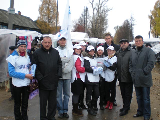 Члены ФПС агитируют голосовать за "Правое дело" жителей Марий Эл в одном из районов республики.