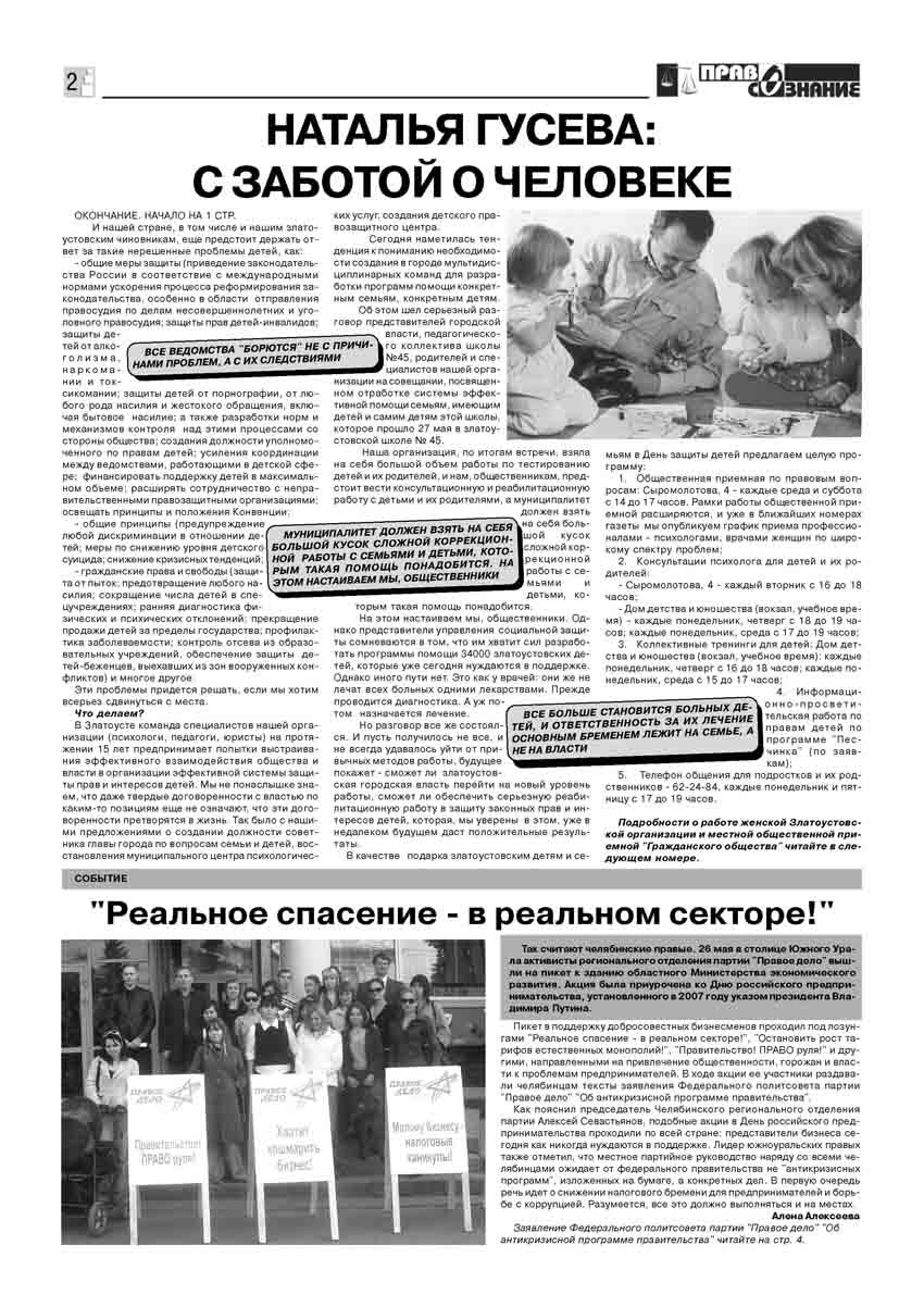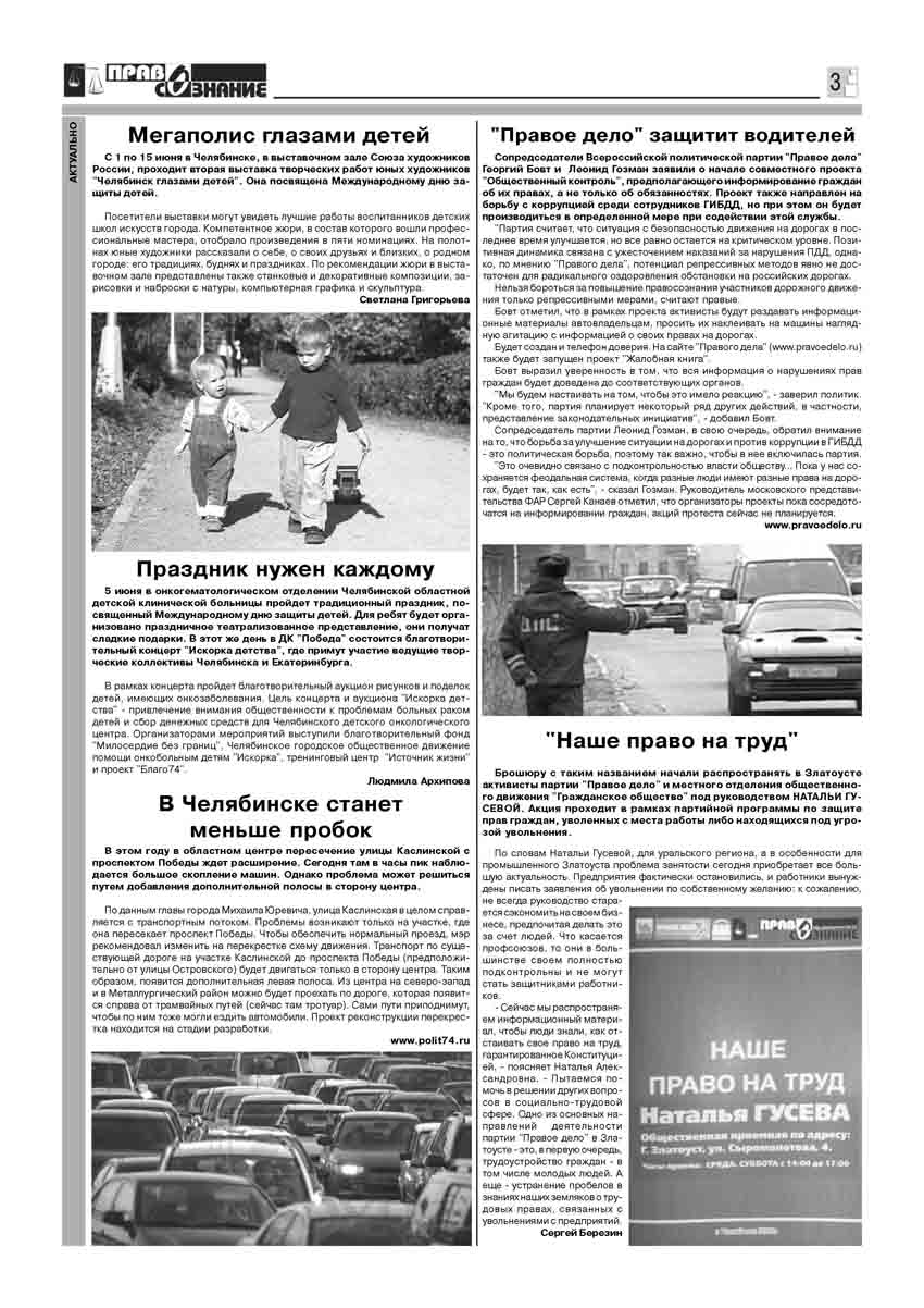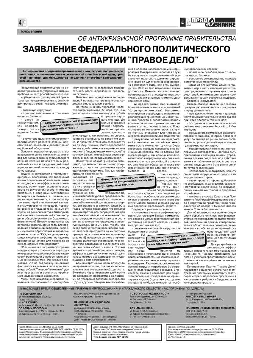 Челябинская область: Вышел в свет очередной номер издания «Правосознание» с материалами о деятельности партии «ПРАВОЕ ДЕЛО» и ее регионального отделения в Челябинской области
