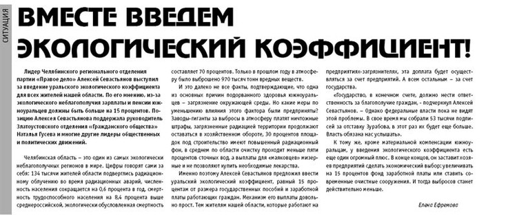 Челябинская область: Вышел в свет очередной выпуск челябинского издания «Правосознание» с материалами о партии «ПРАВОЕ ДЕЛО»