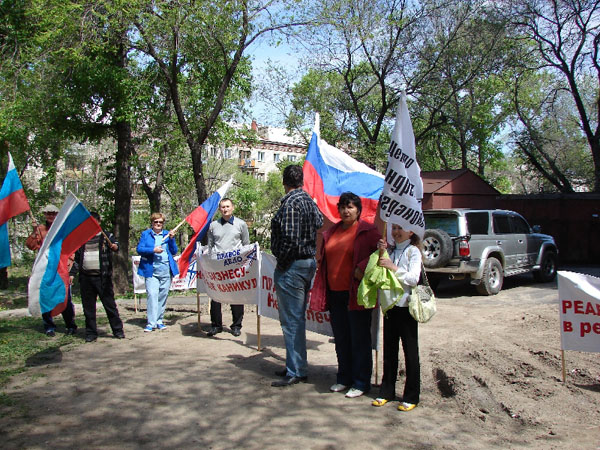 Региональное отделение партии "Правое дело" провело 26 мая пикет, посвященный Дню предпринимателя на одной из центральных улиц г.Хабаровска. В нем приняло участие около 30 человек