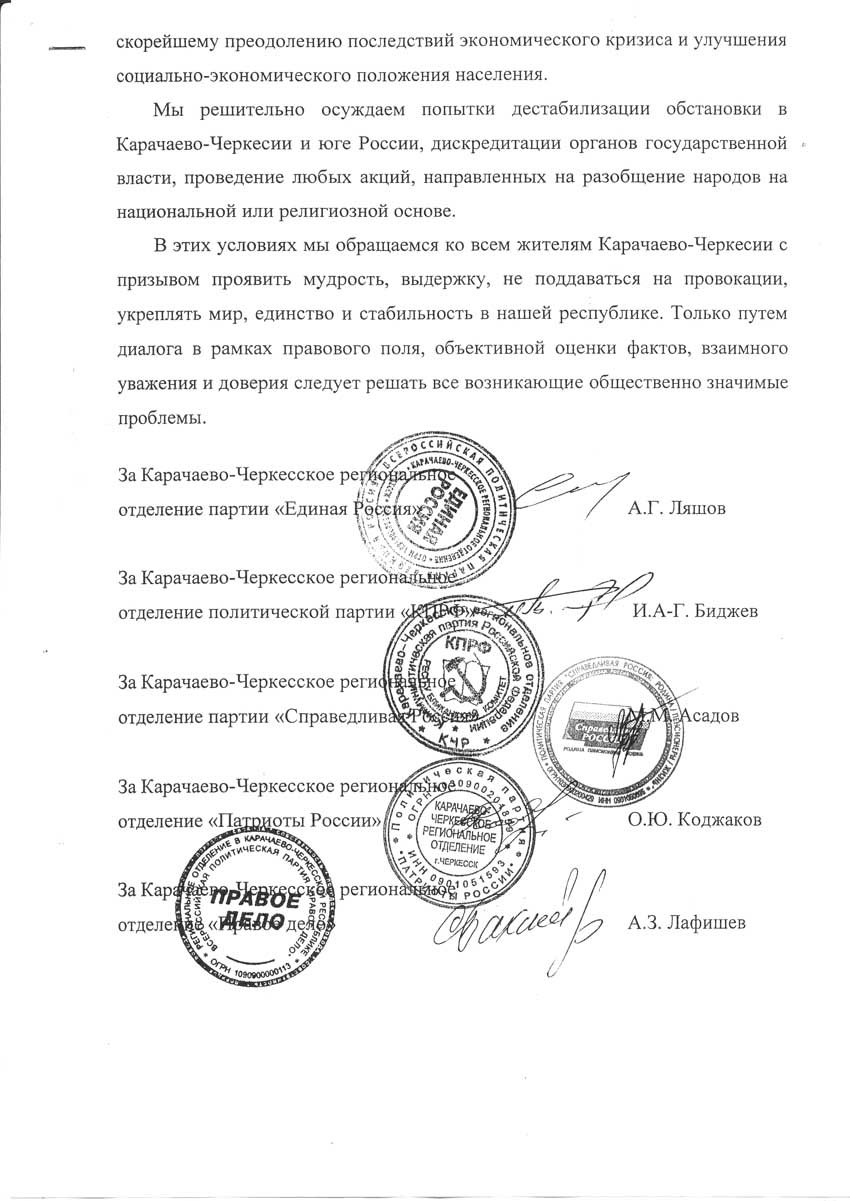 Карачаево - Черкесская Республика: Заявление региональных отделений политический партий в связи с попытками некоторых сил обострить общественно-политическую ситуацию в республике