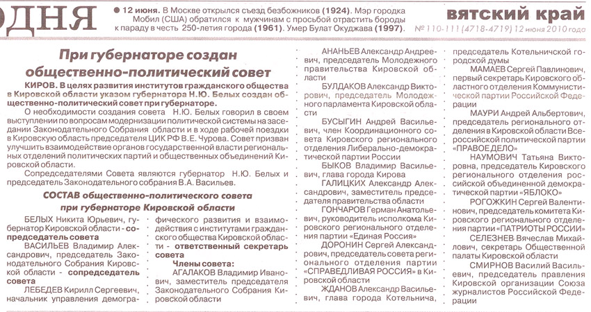 Кировская область: Андрей Маури вошел в состав общественно-политического совета при губернаторе Кировской области Н.Белых