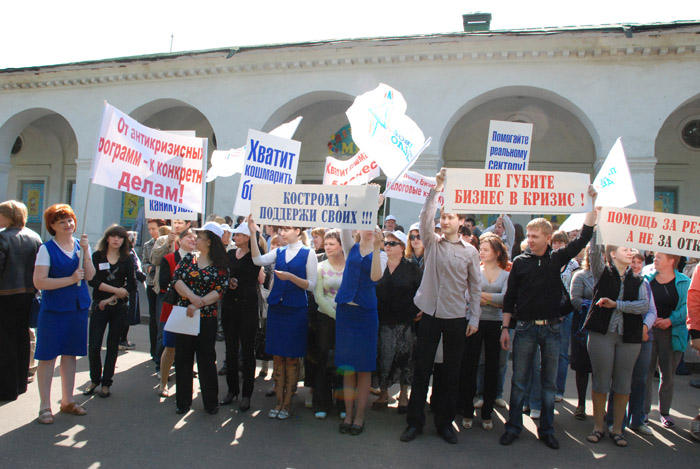 Партийцы и предприниматели собрались, чтобы выразить протест против действий нового собственника здания Торговых рядов. Они выступали под лозунгами «Новый собственник! Уважай закон!», «Не губите бизнес в кризис!», «Не дайте умереть предпринимателю!».