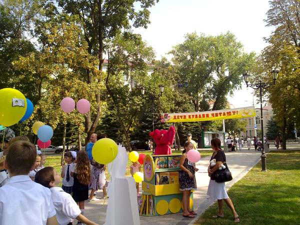 На протяжении всего праздника ростовые куклы поддерживали атмосферу веселья и доброжелательности. Мероприятие завершилось символическим запуском воздушных шаров с логотипом акции «Дети Кубани читают!»