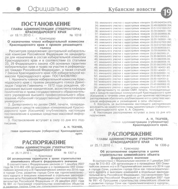 Краснодарский край: Георгий Давитлидзе назначен членом краевой избирательной комиссии с правом решающего голоса