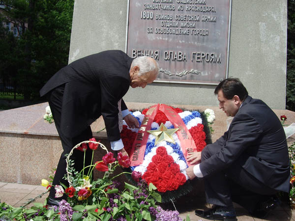 Председатель регионального отделения в Краснодарском крае Всероссийской политической партии «ПРАВОЕ ДЕЛО» Г.Г.Давитлидзе, председатель bсполкома А.С.Бондарев и другие члены партии приняли участие в торжественном возложении венков и цветов к памятнику «Воину-освободителю» на площади Победы; к памятнику «Воинам. погибшим за освобождение города Краснодара» на мемориальном кладбище.