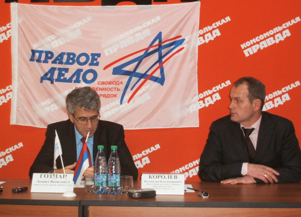 Потом прошла пресс-конференция, на которой Леонид Гозман совместно с членом Федерального политсовета партии Владиславом Королёвым и руководителем регионального отделения Дмитрием Астаховым ответил на вопросы журналистов.