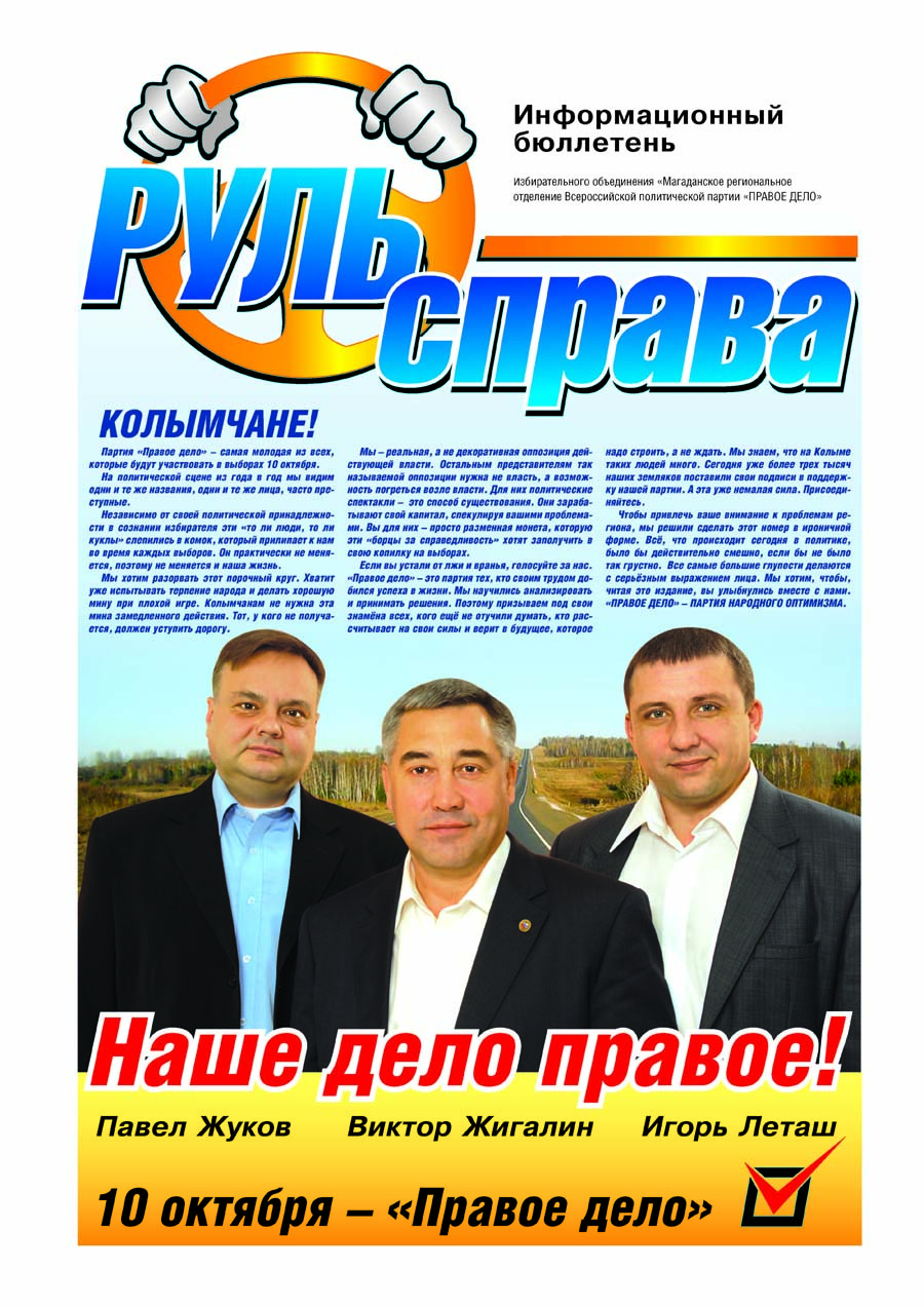 Магаданская область: Вышел в свет информационный бюллетень Магаданского регионального "Правого дела" - "Правый руль"