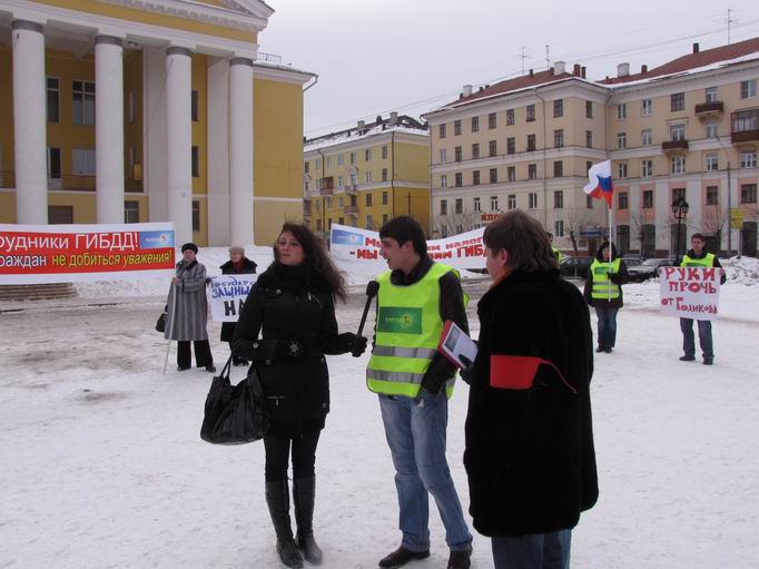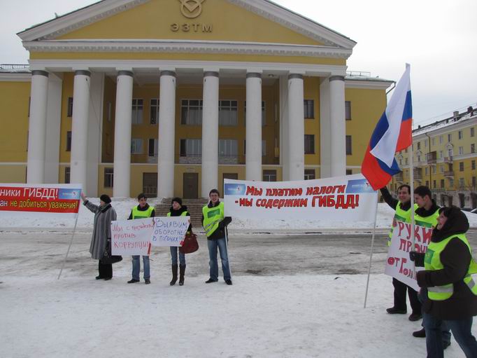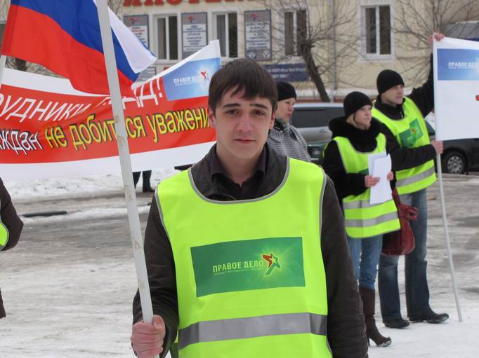 7 марта в подмосковном городе Электросталь активисты партии «ПРАВОЕ ДЕЛО» провели пикет в защиту студента Виталия Голикова, которому угрожает до 5 лет тюремного заключения по сфабрикованному делу. В пикете приняло участие около 25 человек Они держали плакаты с надписями «Руки прочь от Голикова!», «Мы платим налоги – мы содержим ГИББД», «Сотрудники ГИББД! Избиением не добиться уважения!».