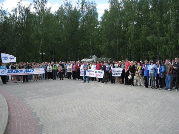 26 мая в День Предпринимателя Нижегородское отделение поддержало Всероссийскую акцию партии «Правое дело» в защиту малого бизнеса под лозунгом «Мы хотим работать!». На пл. Жукова в Приокском районе собралось более трехсот человек – члены партии, предприниматели, активисты молодежного движения. Мероприятие вызвало неподдельный интерес и у простых горожан, которые присоединились к митингу, высказывали свое мнение, задавали вопросы.
