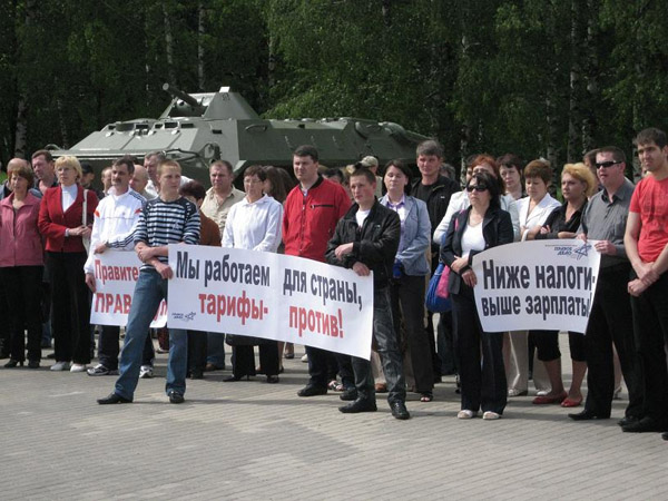 В свою очередь председатель НРО «Деловая Россия» Павел Солодкий отметил, что с 1 января 2011 г. в России меняется вся система налогообложения. Правительство хочет возложить на плечи предпринимателей всю пенсионную реформу. Притом что, по словам руководителя общественной организации, в нашей стране на одного работающего приходится семь безработных. «Я не понимаю, почему за них должны платить те, кто работает, стоит у станка, преподает, лечит, - негодует Павел Солодкий, - эту ношу должно компенсировать сырьевое производство - и газ, и нефть, и другие полезные ископаемые». Это убийство малого бизнеса, говорит председатель НРО «Деловой России». «Мы уже кричим об этой проблеме на всю страну, а нас не слышат. Также как и не слышат, что в Нижегородской области тарифы на электроэнергию выше, чем в других регионах в 2-3 раза, притом, что управляющая компания выплачивает акционерам огромные дивиденды, - отмечает он. – Поэтому мы и собираем митинги и просим – услышьте нас».
