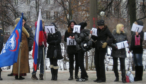 По словам участников пикета «Единой России», им позвонили, попросили придти на пикет и «поддержать политику президента Медведева». Однако остается загадкой, как с точки зрения дзержинских единороссов поддержка президента Медведева связана с желанием отменить всенародные выборы мэра Дзержинска. Видимо, руководство ЕР использует своих сторонников «втемную», не посвящая в тонкости своей политической игры. Кроме того, лозунги пикета «Единой России» визуально не просматривались. Среди пикетчиков ЕР были несовершеннолетние девушки, закрывавшие по этой причине свои лица белыми листками с черными буквами.