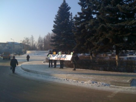 На этот раз пикет прошел в сквере напротив ДКХ на площади Свадебной, так как администрация города под предлогом проведения «парада снегоуборочной техники» не разрешила его проведение непосредственно у здания городской Думы.