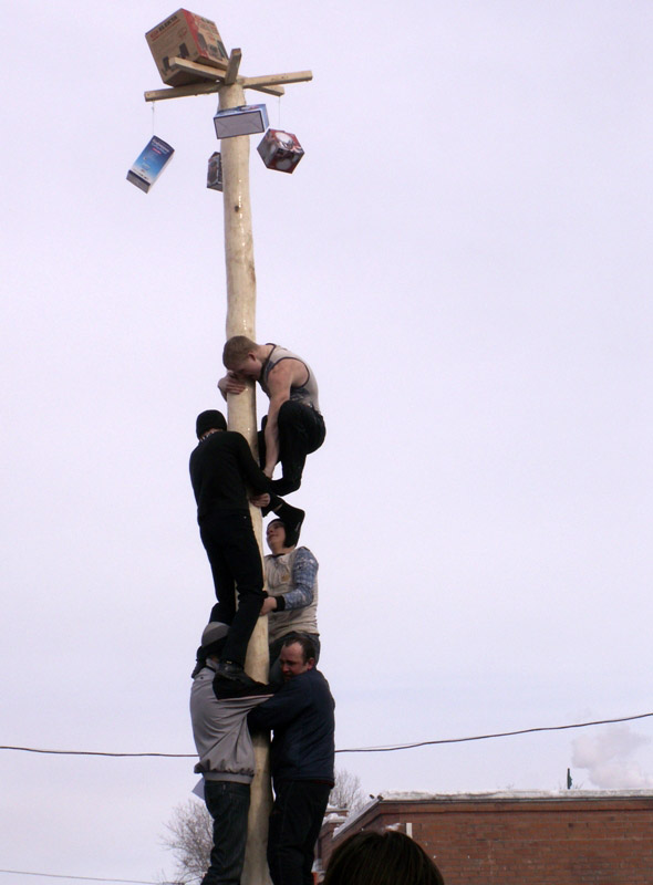 Ну а главный приз - музыкальный центр - заслужил Виталий, самый ловкий и напористый. Шестиметровый ледяной столб покорился только ему.