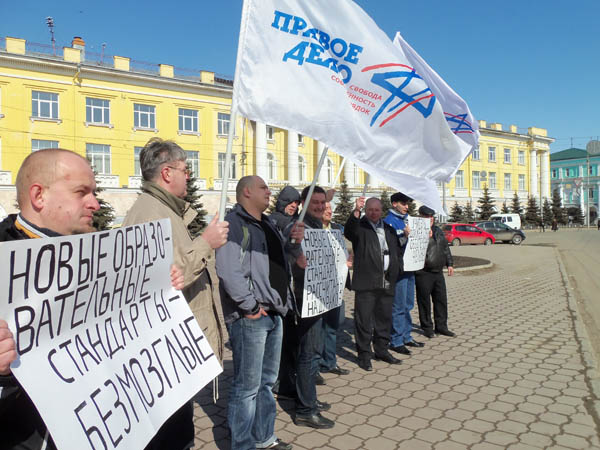 Против новых образовательных стандартов, которые фактически подразумевают ликвидацию полного всеобщего среднего образования и заменяют сложившуюся классическую систему образования странным набором из поверхностных знаний, активисты партии «Правое дело» протестовали сегодня в более чем в двадцати регионах страны.